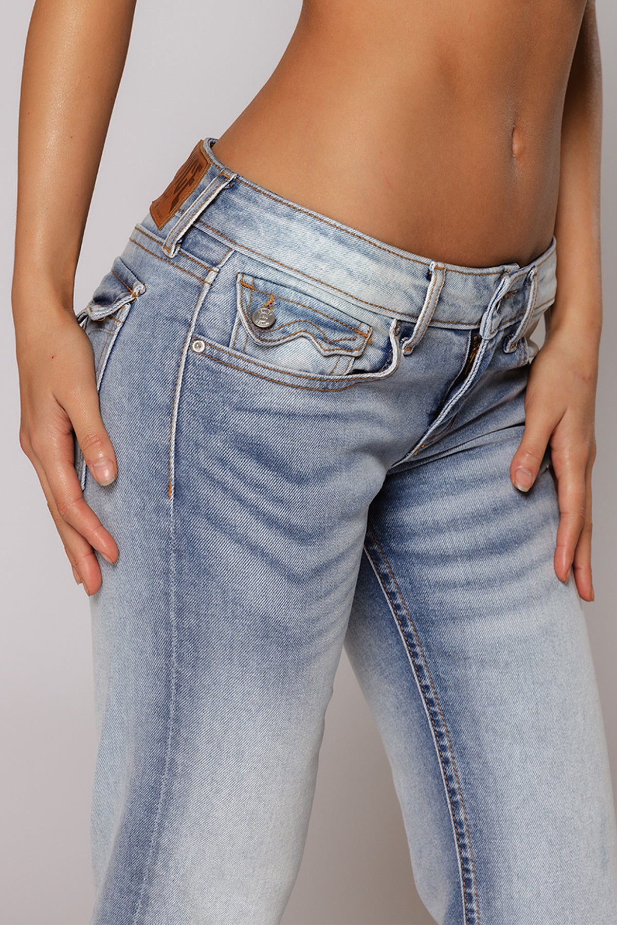 A fresh take on our beloved Icon Jean– a Revice Staple. The Icon 2.0 features a super low-rise fit that will make all of your 2000’s dreams come true. This jean stays true to our sleek baby flare silhouette while highlighting our new signature Revice flap pocket. These jeans will without a doubt keep you looking stylish and feeling sexy. Now in Blue Current– a unique sky blue wash with wave whiskers hand-sanded in the front.